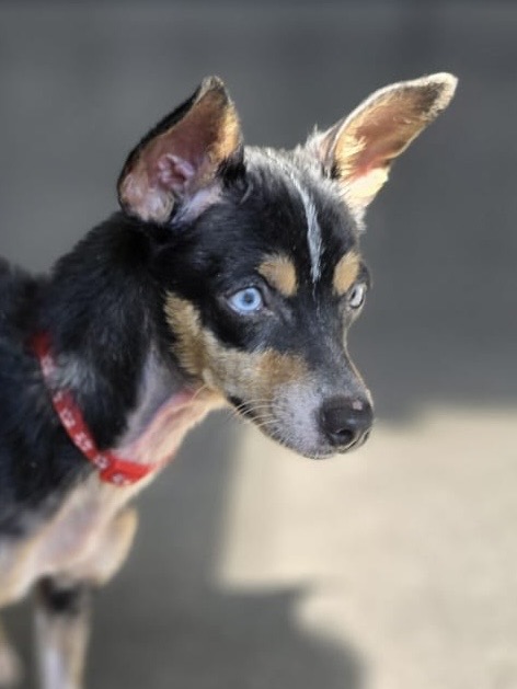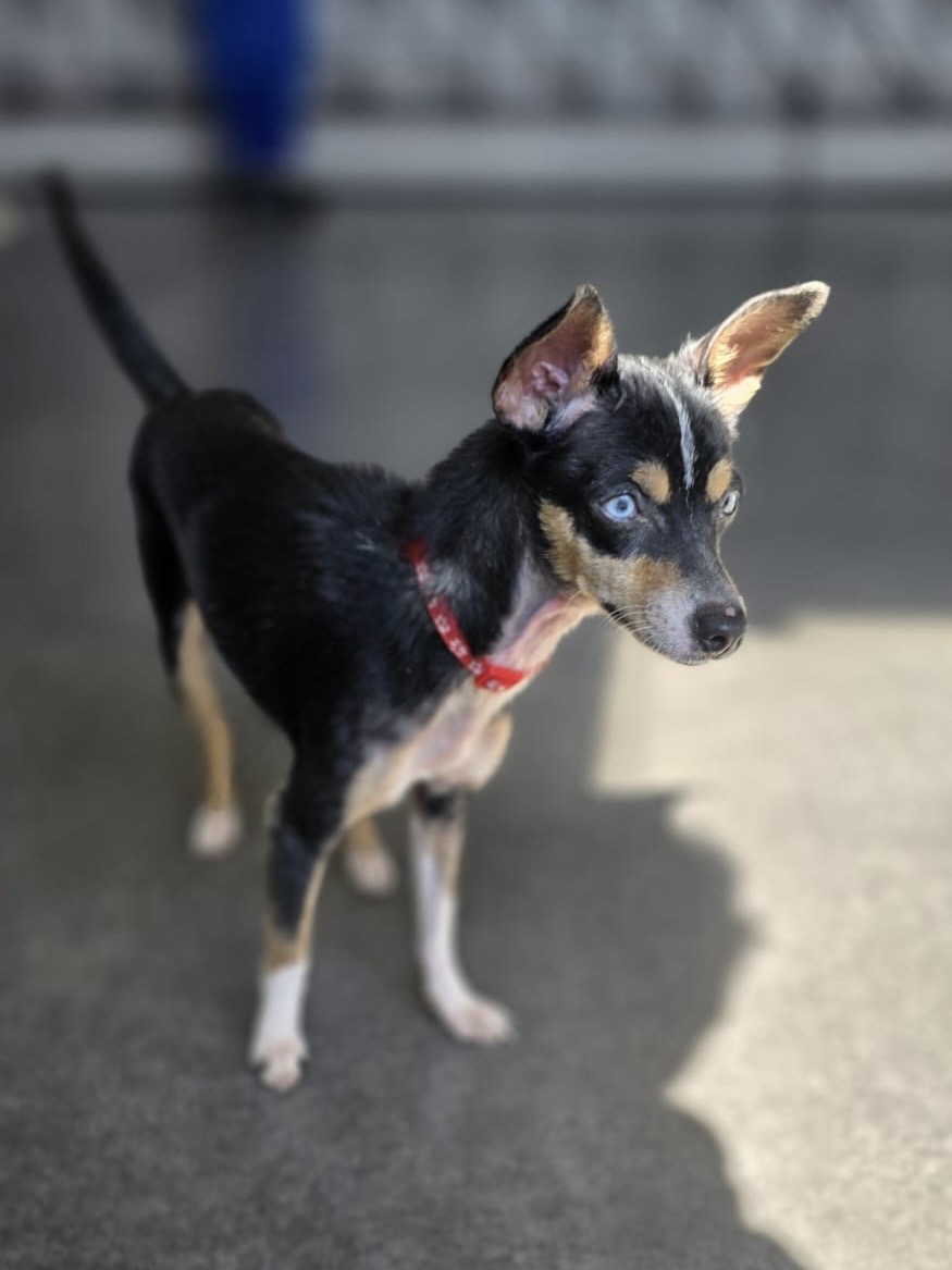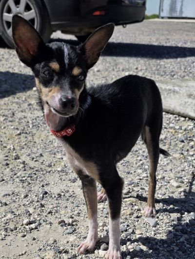 Hope ist eine zarte, kleine Mischlingshündin, geboren im Oktober 2024, mit einem wunderschönen schwarz‑braun‑weißen Fell und diesen außergewöhnlich hellen, fast hypnotischen Augen, die sofort auffallen. Sie ist leicht gebaut, aufmerksam, wach und könnte ein Mischling aus Pinscher und Chihuahua sein. Sie ist sensibel, klug, vorsichtig – und unglaublich loyal, sobald sie Vertrauen gefasst hat.