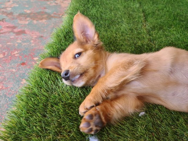 Er ist geimpft, gechippt und entwurmt. Mit seinem Impfpass dürfte er ab dem 30.5. nach Deutschland fliegen. Dann ist er 4 Monate alt.