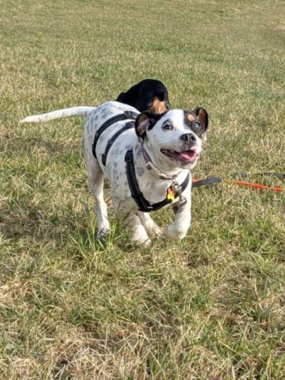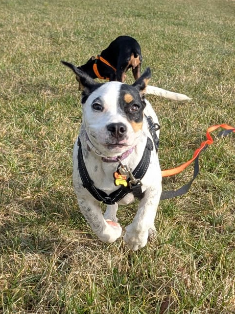 Ivy wird an die Leinenführigkeit gewöhnt, was sie schon richtig gut macht und lernt so nach und nach ihre Umgebung kennen. Fremde Menschen und laute Geräusche findet sie noch etwas gruselig, aber auch daran gewöhnt sie sich mehr und mehr.