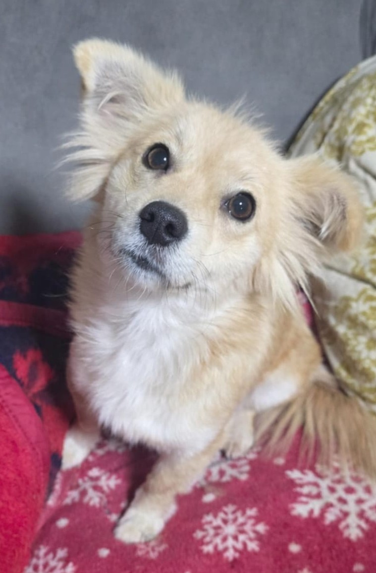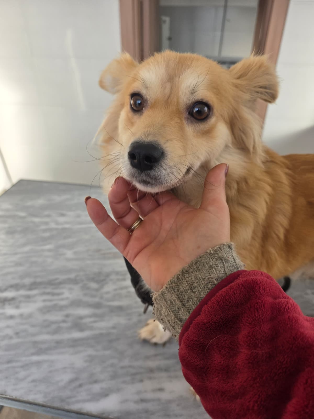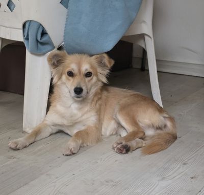 Jasmin ist eine sehr liebe Hündin, unaufdringlich, aber sie genießt jede Aufmerksamkeit von Menschen, Hunden und Katzen. Vor lauter Freude versucht sie zu miauen und herumzurennen.