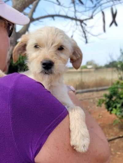 Jenna - eine entzückende Welpin hatte keinen guten Start ins Leben; sie wurde mit ihren 6 Geschwisterchen von einer Mama geboren, die an einer Kette festgezurrt war und irgendwo auf einem Schrottplatz hing. Als die Tierschützer hin kamen, gab der Besitzer alle weg, auch die Mama. Sie musste aufgepäppelt werden und wird später noch auf der Homepage vorgestellt.