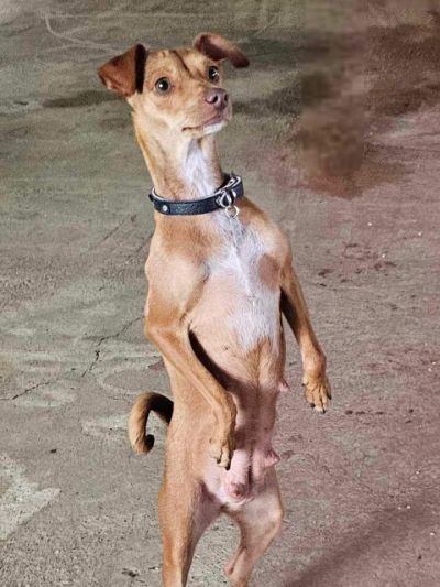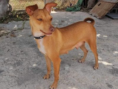 Noch ist sie nicht kastriert, da die Welpen noch gesäugt werden. An Katzen ist sie nicht besonders interessiert.