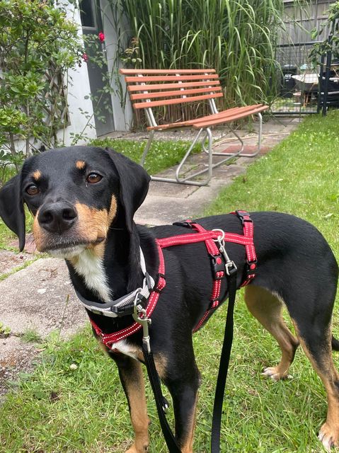 Sie freut sich wenn wir mit ihr spazieren oder in den Garten gehen und ist auf der Straße souverän. Wir wohnen wirklich an einer lauten Straße und hier kommt alles vorbei. Für Jinx kein Problem.