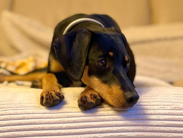 Sie ist ganz ruhig und liegt bei uns ganz brav auf dem Sofa oder im Körbchen und beobachtet das Geschehen oder schlummert.