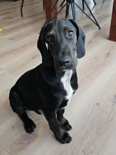 Joschi wünscht sich eine Familie oder eine Einzelperson mit Zeit für einen Welpen und Lust, auch eine Hundeschule mit ihm zu besuchen.