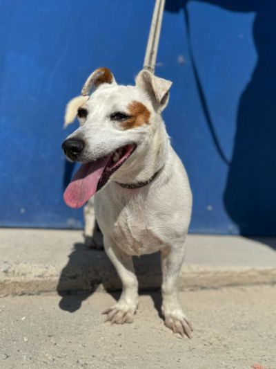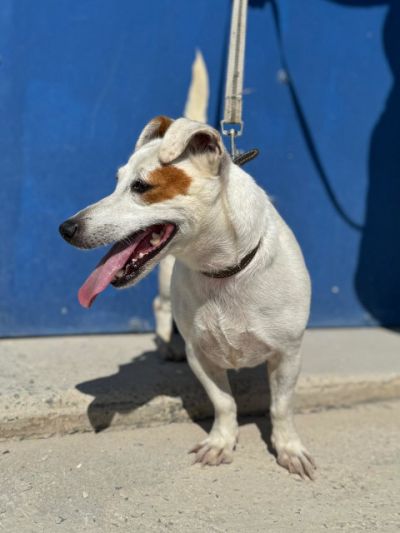 Josie ist ein typischer Jack Russel, eine anhängliche, intelligente, süße Hündin, die ein Zuhause für immer sucht. Sie geht sehr gut an der Leine und teilt sich problemlos einen Käfig mit Henrietta und Lily. Sie jagt gerne den Mäusen hinterher, von denen im Moment mehr als genug im Pound herumhüpfen. Josie versteht sich gut mit allen anderen Hunden und scheint sich in der Gesellschaft von Menschen wohl zu fühlen. Vor Katzen hat sie eher Angst und Kinder wurden noch nicht getestet, aber es sollte kein Problem darstellen.