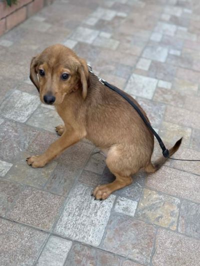 Kaelio ist aktuell noch im Wachstum und wird voraussichtlich ein mittelgroßer Hund – etwa 40 cm Schulterhöhe bei 10–12 kg Gewicht.