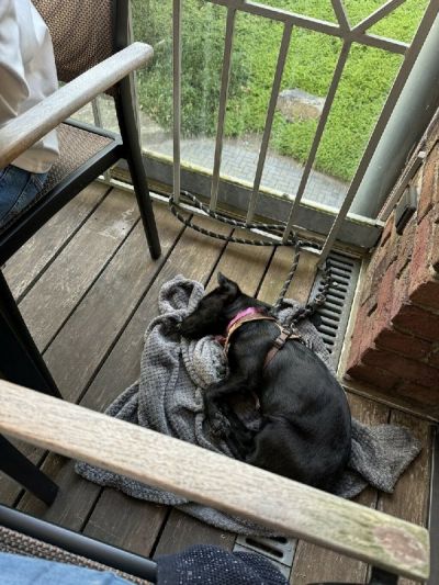 Sie kommt super zur Ruhe - auch bei lauten Geräusche z.B. durch Baulärm ist sie nach einer kurzen Zeit total entspannt und beobachtet auf ihrer Decke interessiert das Treiben. Wir haben schon mehrfach das Restaurant besucht. Das Hereingehen fand sie noch unheimlich, aber dann hat sie ganz entspannt auf ihrer Decke neben uns geschlafen.