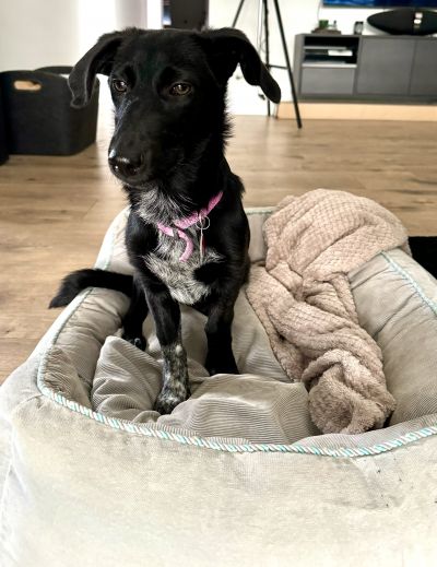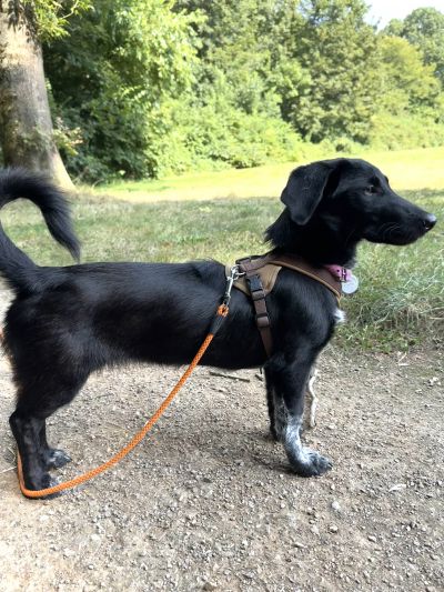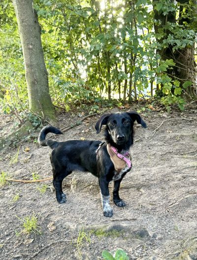 Kaylie baut sehr schnell eine Bindung auf. Das zeigt sich besonders beim Spazierengehen, wo sie sich sehr stark an uns orientiert und bereits gut abrufen lässt - ein Jagdtrieb ist bisher nicht erkennbar. Sie ist super neugierig, inspiziert alles und springt oftmals noch vor unbändiger Freude herum