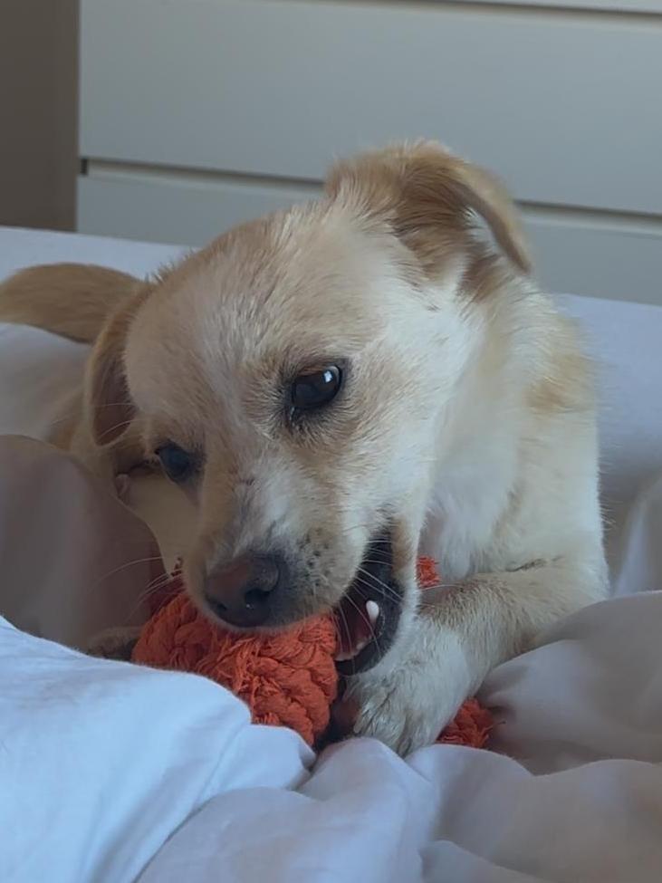 Zurück blieb eine einsame, verängstigte und tieftraurige Kiki. Überfordert mit der Situation suchte der ältere Herr Hilfe – und so nahm die Tierschützerin Viki die kleine Hündin bei sich auf.
