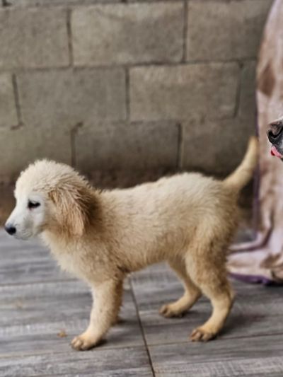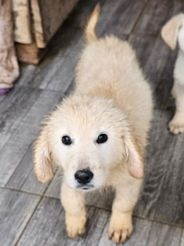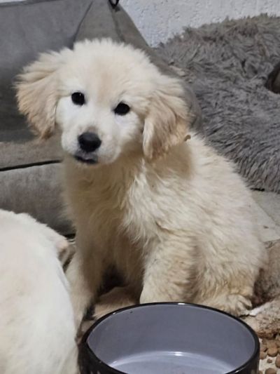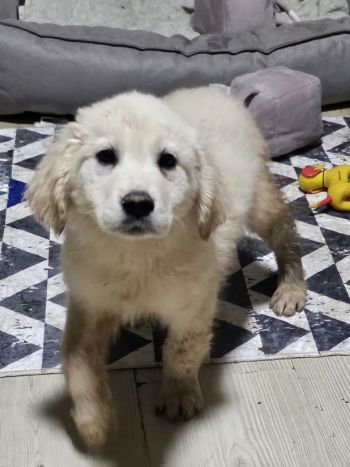 Kimba hat sich seitdem prächtig entwickelt. Die kleine Labbymix-Dame ist ein hinreißendes Energiebündel. Ihr samtweiches Fell erstrahlt in einem wunderschönen Creme-Ton.