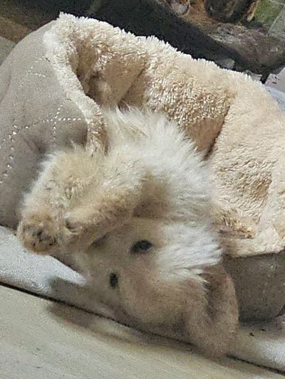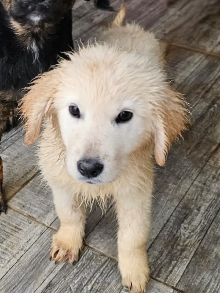 Kimba, ein Labbymix-Baby, wurde vor einer Kellertür geboren. Ihre Mama Ariella brachte dort sechs kleine Welpen zur Welt. Doch die kleine Familie konnte dort nicht bleiben, da die Bewohner des Hauses die Kellerräume nicht betreten durften. Tierschützerin Viki wurde um Hilfe gebeten und brachte die ganze Familie zunächst in die Tierklinik. Leider waren zwei der Welpen zu schwach und verstarben nach wenigen Tagen, was uns alle sehr traurig machte.