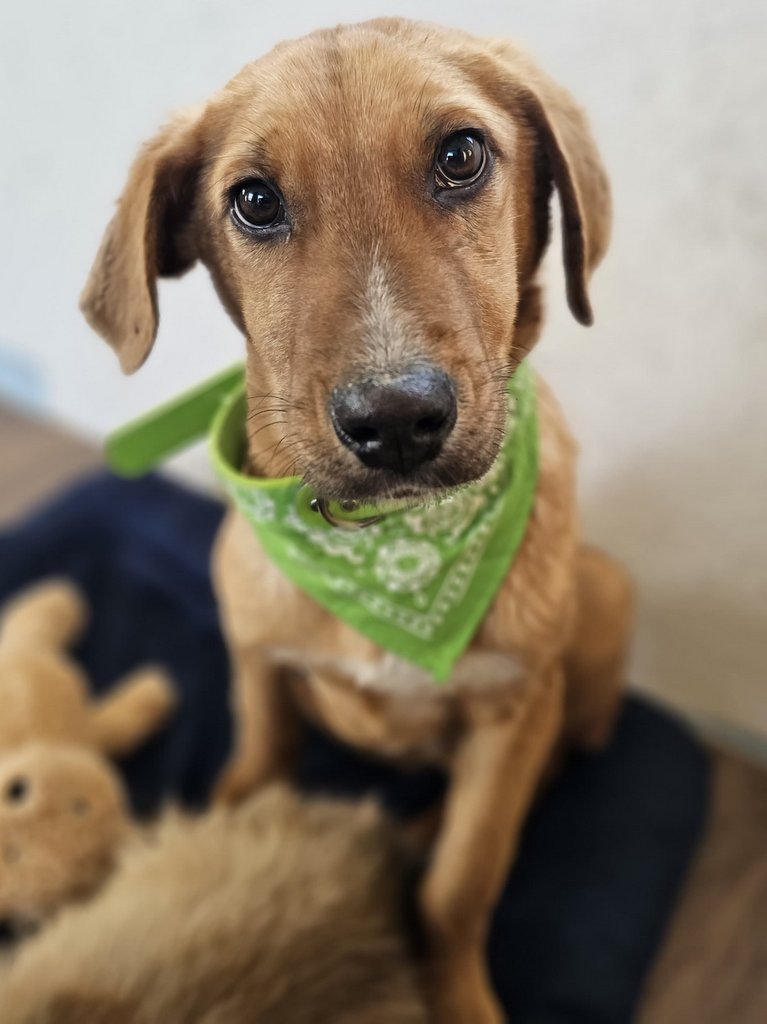 Unsere Tierschützer erleben ihn als einen sehr klugen Junghund. Sie haben das Gefühl, dass er sie ansieht und alles versteht, was man sagt und denkt. Er lernt sehr schnell und folgt ihnen überall hin. Zudem ist er zu allen anderen Hunden freundlich, liebt es zu spielen und sucht stets die Aufmerksamkeit der Tierschützer.