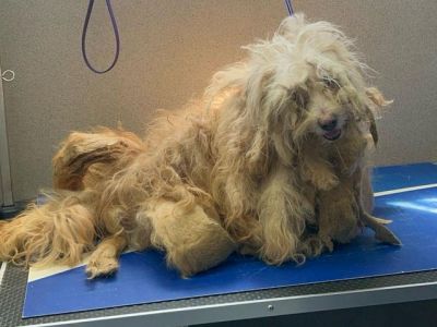 Den Tierschützern wurde erlaubt, den armen Hund aus der Tötungsstation zu holen, um ihn zum Hundefriseur zu bringen.