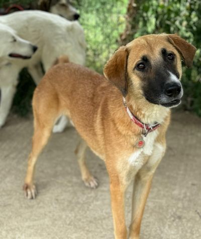 Der schöne Rüde teilt sich seinen Zwinger mit 2 großen Hündinnen und die 3 verstehen sich prima. Ein Katzentest wurde mittlerweile auch gemacht und Larry hat Angst vor ihnen und versteckt sich in der letzten Ecke. Zu Beginn hatte er im Shelter ebenso viel Angst vor der dort lebenden Ziege. Mittlerweile sind die beiden aber Freunde geworden und mit einer ruhigen Katze könnte dies auch der Fall sein.
