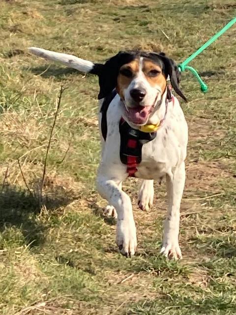 Da die Hündin unter einer Arthrose leidet, bekommt sie die bekannten Librela Injektionen alle 4 Wochen. Durch dieses Medikament lebte Leona richtig auf. Sie spielt und tollt herum wie ein junger Hund und freut sich auf jeden Spaziergang.