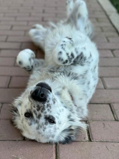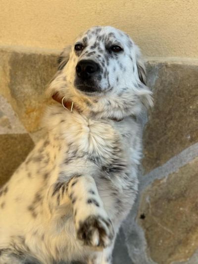 Logan ist ein englischer Setter und somit ein Jagdhund. Ob man ihn später mal ableinen kann, können wir nicht sagen.