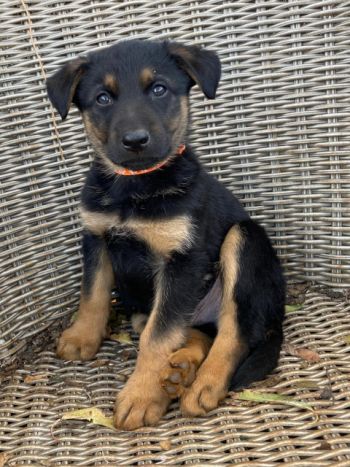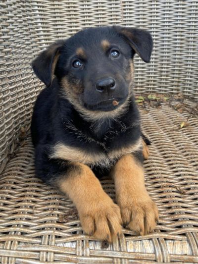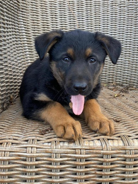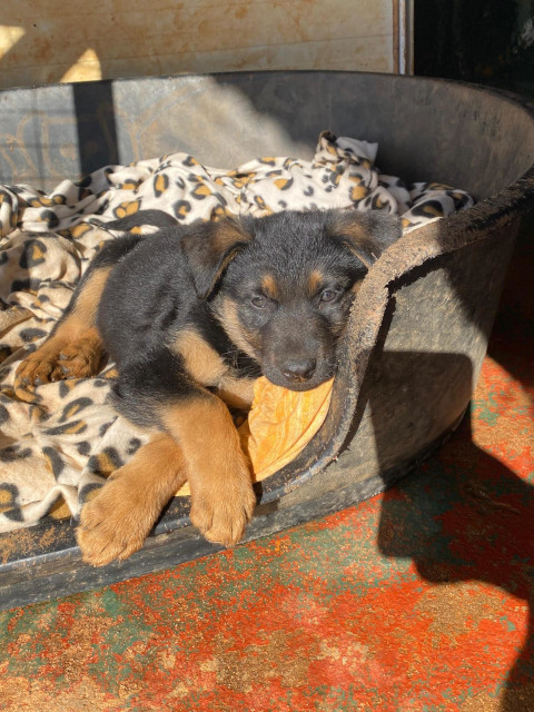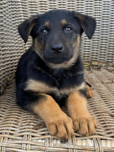 Maddox ist der von den Brüdern mit den braunen Augenbrauen. Ein knuffiger Welpe, der auch mal ein Großer werden wird. Maddox mag Menschen, toben mit den Geschwistern, fressen und schlafen. Er sollte in die Hundeschule gehen dürfen, damit er lernen kann was von ihm erwartet wird und sicher findet man dort auch heraus, was ihm und seinen Besitzern liegt - von Agility bis Fährte usw. ist mit ihm sicher einiges dabei was Spaß bringt.