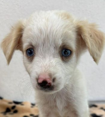 Alle Welpen haben unterschiedlich gefärbte Augen, Majas Augen sind blau mit attraktiven Sprenkeln. Ihr Näschen hat nicht ganz so viel Farbpigmente abbekommen, aber das tut ihrer Schönheit keinen Abbruch.