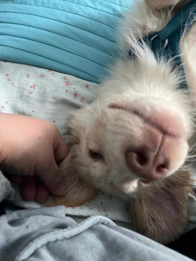 Marti hat eine wunderschöne Augenfarbe und ein watteweiches Fell. Seine Mama hat ungefähr eine Größe von 40 cm. Wie groß Marti werden könnte, kann man nicht sagen, weil wir den Papa nicht kennen. Ich schätze mal mittelgroß. Marti hat von Geburt an ein Stummelschwänzchen.