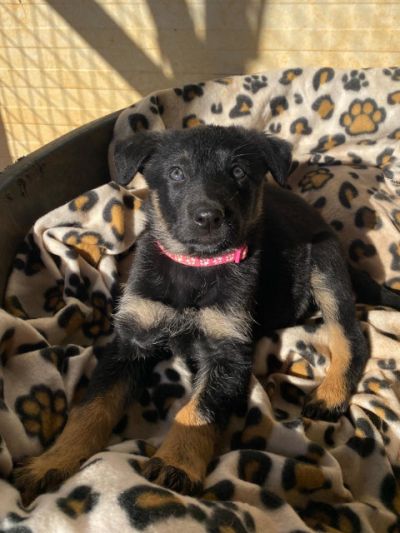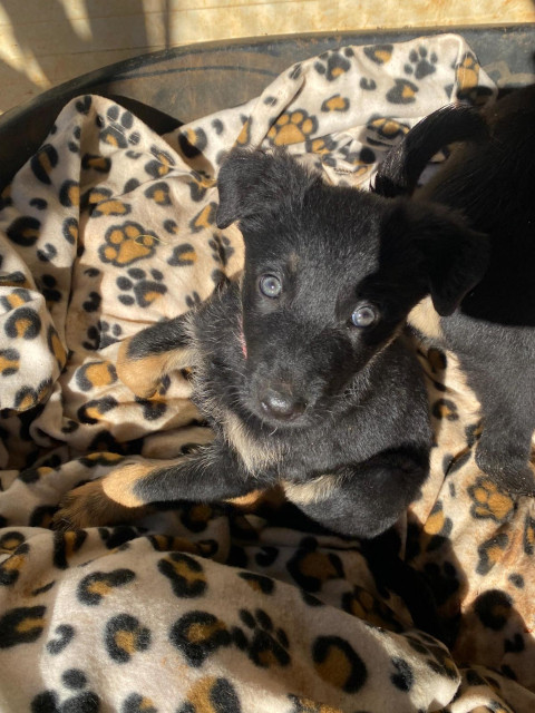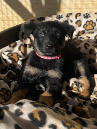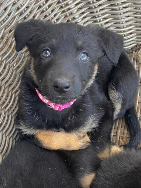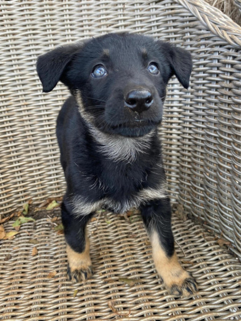 Mavie ist die Kleinste der Geschwister, aber das hindert sie nicht daran mit den anderen über das Feld zu toben. Sie frisst gut, mag Knuddeln und ist ein zufriedener Welpe. Mavie wird auch größer werden und sollte die Hundeschule besuchen, dann wird sie ein sehr loyaler Begleiter werden.