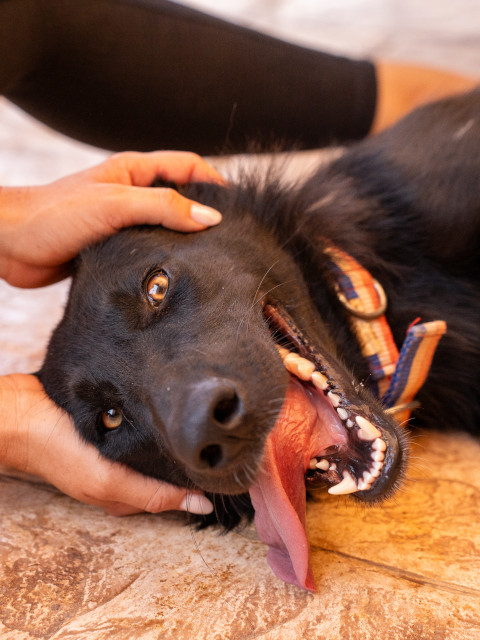 Maya ist anfangs etwas zurückhaltend und zeigt sich unsicher, besonders wenn man sich ihr zu schnell nähert. Sie duckt sich manchmal ängstlich – ein trauriger Hinweis darauf, dass sie vermutlich schlechte Erfahrungen mit Menschen gemacht hat. Doch sobald sie merkt, dass man ihr nichts Böses will, taut sie auf und zeigt ihre liebevolle, verspielte Seite. Dann liebt sie es, gestreichelt und besonders am Bauch gekrault zu werden. Sie rollt sich vertrauensvoll auf den Rücken – ein Zeichen dafür, wie sehr sie Nähe und Zuwendung genießt, wenn sie sich sicher fühlt. Im Umgang mit anderen Hunden ist Maya zunächst vorsichtig, fast unterwürfig. Doch auch hier zeigt sich schnell ihre fröhliche Seite: Spielen ist ihre große Leidenschaft! Ihre beste Freundin ist die kleine Hündin Mona, mit der sie gemeinsam gerettet wurde. Mona ist so etwas wie ihre Chefin – die beiden sind ein eingespieltes Team.