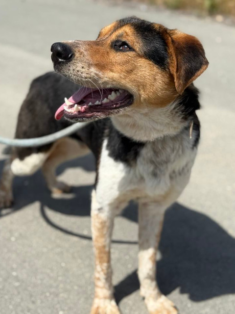 Mellow ist ein sehr süßer, riesiger, noch junger Hund. Er ist sehr freundlich zu allen, geht gut an der Leine, ist unterwürfig und hat keinerlei Dominanz in sich. Aber wegen seiner Größe sollte die Familie besser keine sehr kleinen Kinder haben, die sonst umfallen könnten. Mellow sucht eine junge und aktive Familie. Er ist sanft, reagiert nicht auf andere Hunde, zieht nicht an der Leine, muss aber natürlich noch Training haben.