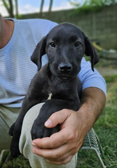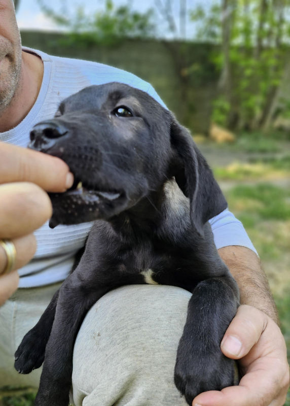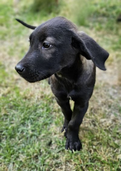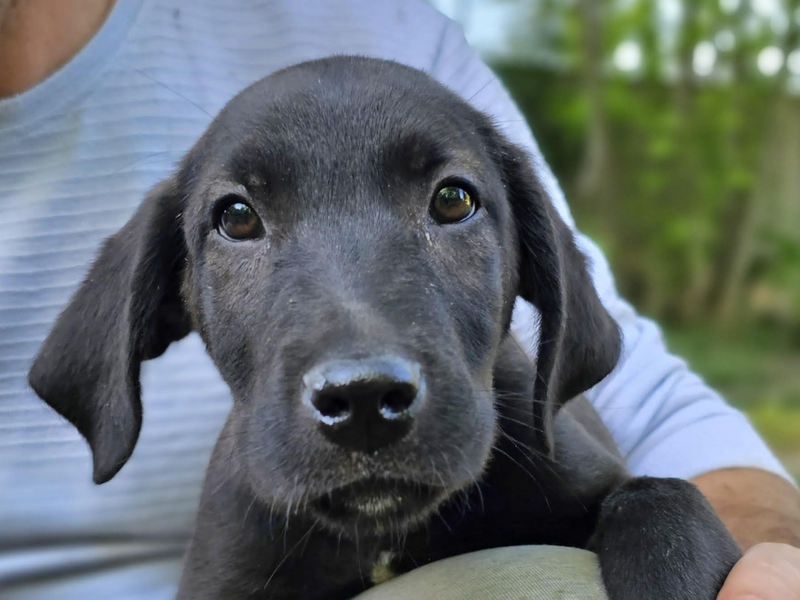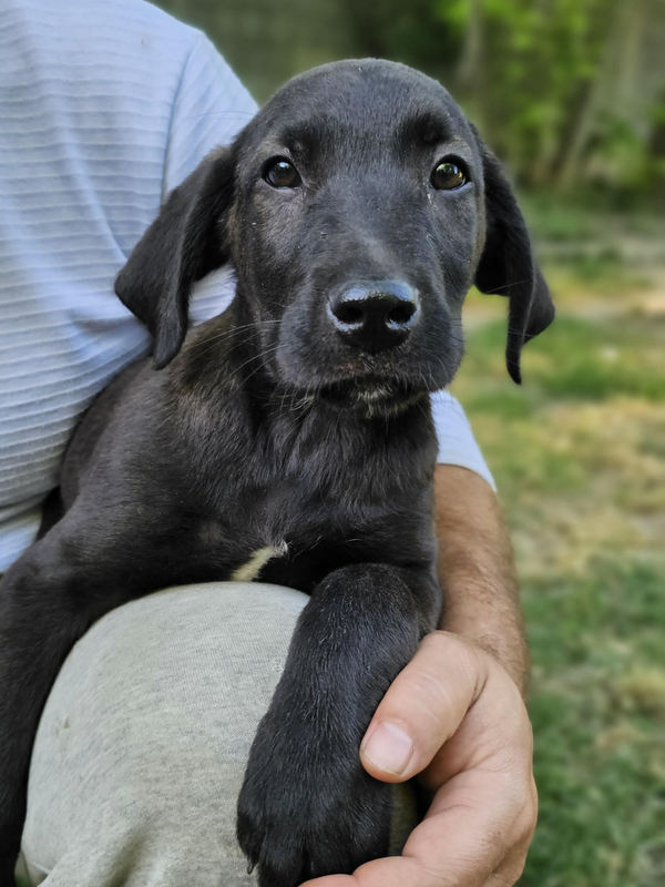 Kollegen von uns waren gerade in Nordmazedonien und waren unterwegs um Hunde für das Kastrationsprojekt zu suchen, da bemerkten sie auf einer Landstraße, direkt an einem Feld einen winzigen Welpen sitzen. Sie wendeten sofort und stellten fest, dass dort noch ein Welpe saß. Beide noch sehr jung, geschätzt 8 Wochen.