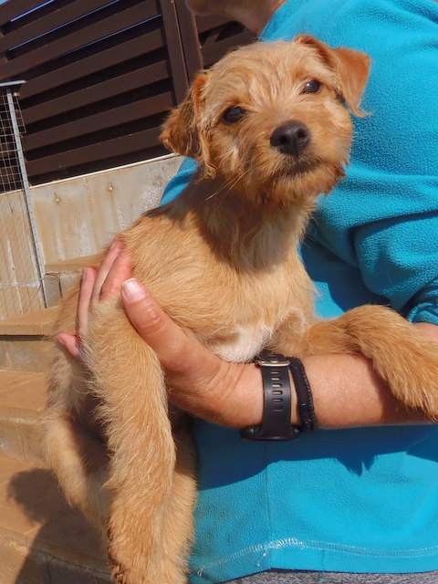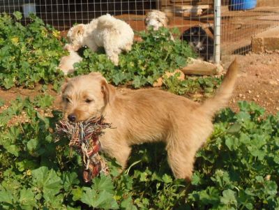 Er hat sich schnell eingelebt und spielt sehr gerne mit den anderen Welpen dort.