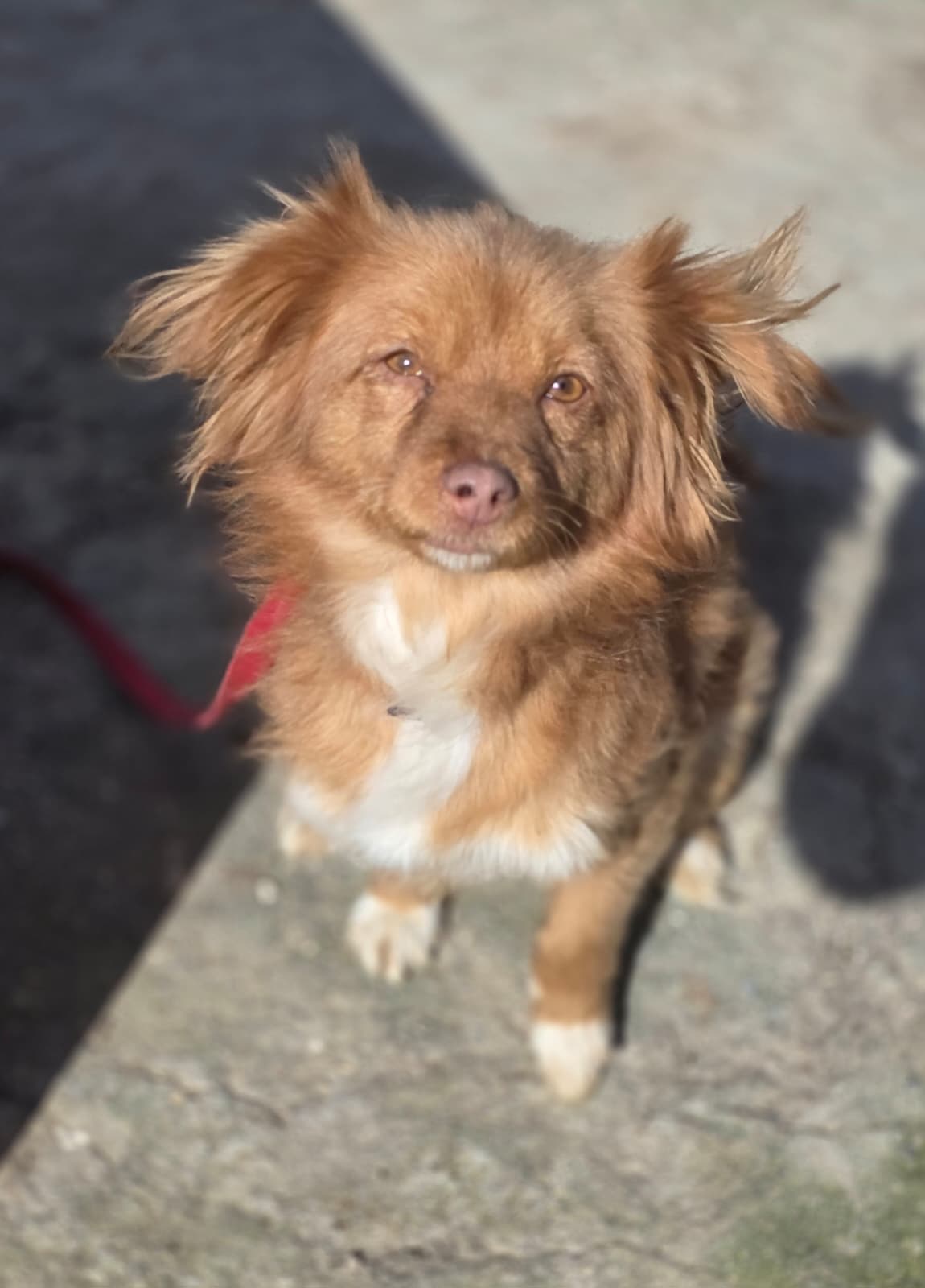 Mimi ist eine intelligente und kuschelbedürftige kleine Kokoni-Hündin, die sich Menschen gegenüber unterwürfig verhält. Sonst ist sie selbstsicher und hat gut auf der Straße überlebt.