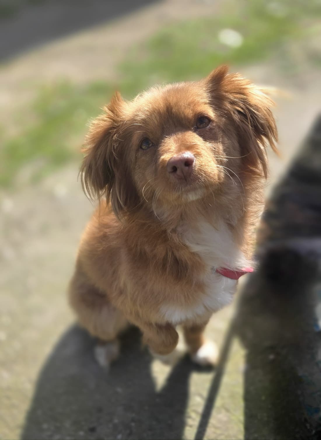 Mimi mag andere Hunde und auch Katzen und ist sehr mutig.
