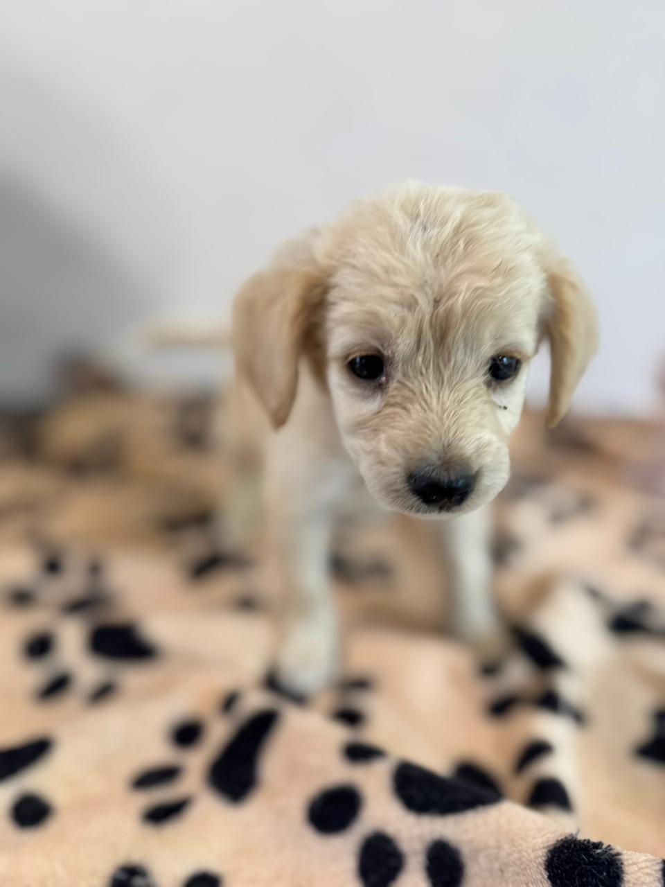 Alle Welpen haben unterschiedlich gefärbte Augen, Mollys Augen sind braun.