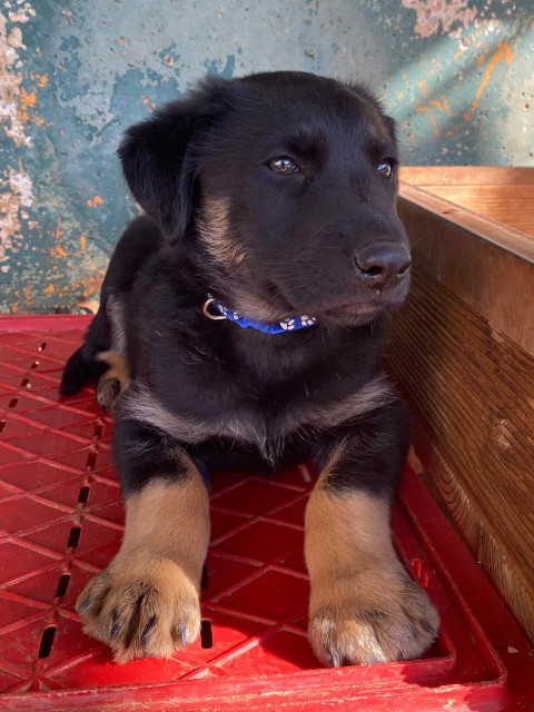 Monty ist ein - noch - kleiner Rüde, ein stämmiger Welpe, der sicher ausgewachsen eine gute Größe erreicht. Im Moment besteht sein Leben aus toben mit den Geschwistern, fressen, schlafen und geknuddelt werden. Da er ein Flaschenkind war, hat er einen sehr guten Bezug zum Menschen.