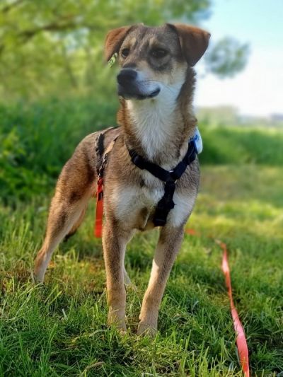 Mit seinen 13 kg und einer schlanken, sportlichen Figur ist Mosly leicht zu handhaben. Ein umzäunter Garten wäre ideal für ihn, damit er nach Herzenslust rennen und spielen kann.