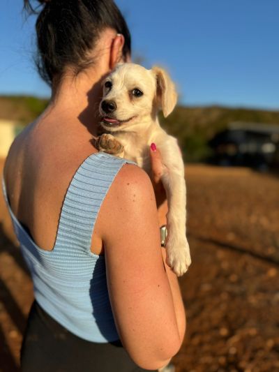 Der charmante Noah ist der größte der drei Kokoni-Mix-Welpen und besticht mit seinem strahlend weißen Fell. Mit einer Schulterhöhe von 25 cm und einem Gewicht von nur 3 kg ist er zwar klein, hat aber ein großes Herz und eine noch größere Persönlichkeit. Noah hat seinen schwierigen Start gehabt - er wurde von seinem ehemaligen Besitzer einfach entsorgt. Er ist nun bei Rita gemeinsam mit seinen Geschwistern Nino und Nova und Mutter Nicole.