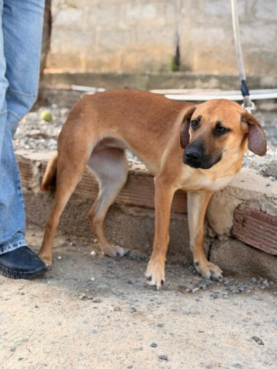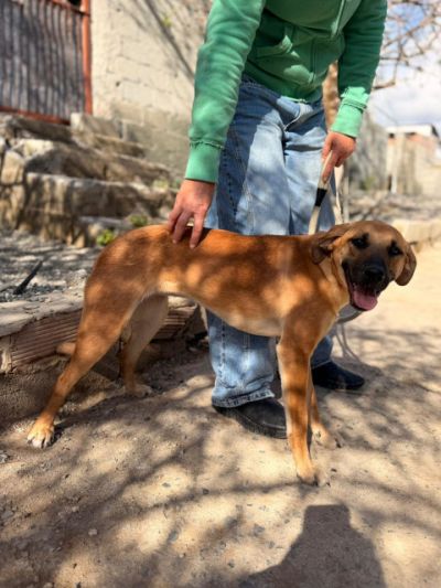 Die liebenswerte Orange wurde Ende Januar zusammen ihren drei Schwestern in einem Industriegebiet in der Nähe einer Baustelle gefunden. Trotz dieses schwierigen Starts ins Leben hat sie sich ihr großes Herz für Menschen bewahrt und zeigt sich heute als unglaublich menschenbezogene junge Hündin.