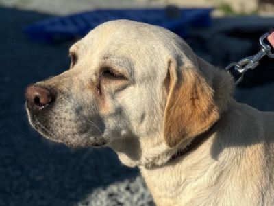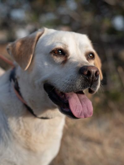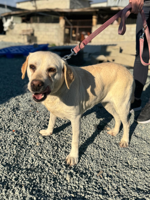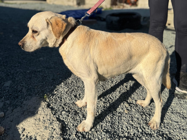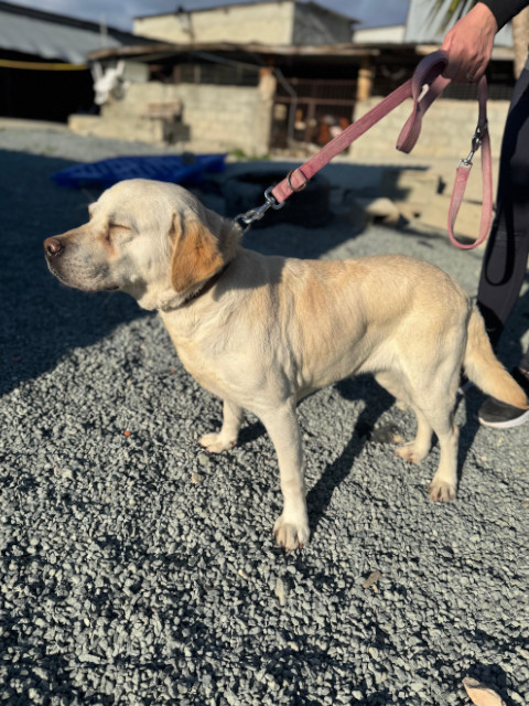 Penny ist ein mittelgroßer Labrador in beige; sie verträgt sich sehr gut mit allen Hunden im Shelter. Penny ist zu allen Menschen sehr sanft und mag auch Kinder. Sie geht gut an der Leine und zieht nicht. Leider frisst sie zu schnell, aber das kann man mit einem Anti-Schling-Napf sicher regulieren und vielleicht legt sie es dann noch ab.