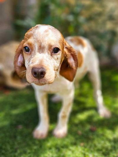 Wir gehen davon aus, dass es Bretonenmischlg sind. Das sind eher ruhige und sehr sanfte Hunde.
