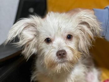 Pubgee liebt es auf dem Schoß zu sitzen, möglichst wenn die Menschen etwas essen und sie möchte immer schauen, ob es ihr auch schmecken könnte.