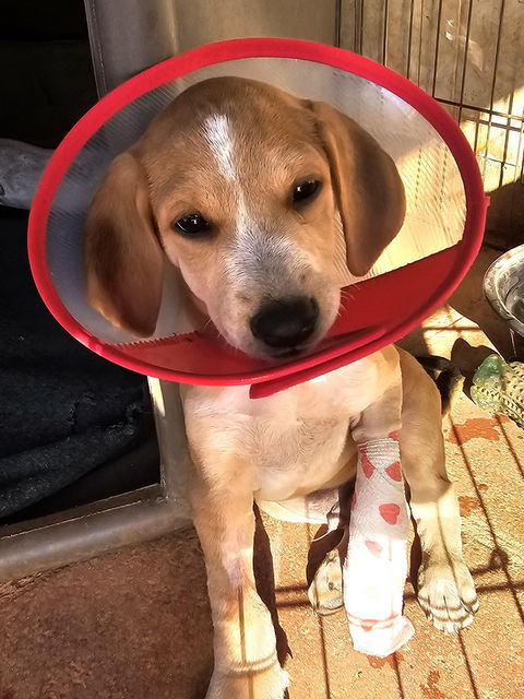 Bald aber darf er wieder zum Tierarzt, der sich die Pfote nach der OP anschaut. Wir hoffen, dass nun alles gut wird.