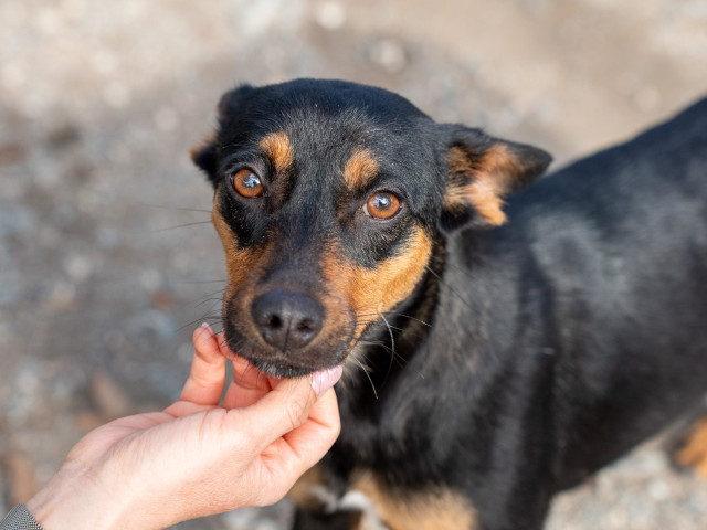 Gemeinsam mit ihren Welpen Rio und Rosco und Papa Racer wurde River Anfang März aus einem lokalen Tierheim gerettet. Hier lebten sie unter schlimmen Bedingungen. Es gibt dort nicht einmal Helfer, die regelmäßig die Zwinger reinigen. Zum Glück ist die Familie nun im Argos Shelter und werden liebevoll umsorgt.