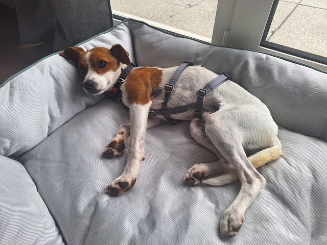 Ansonsten kommt er auch gerne zur Ruhe und könnte auch ein Bürohund oder Homeoffice-Hund werden.