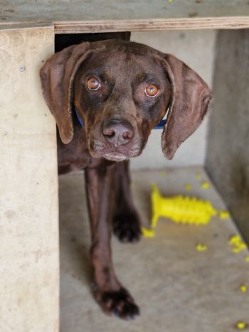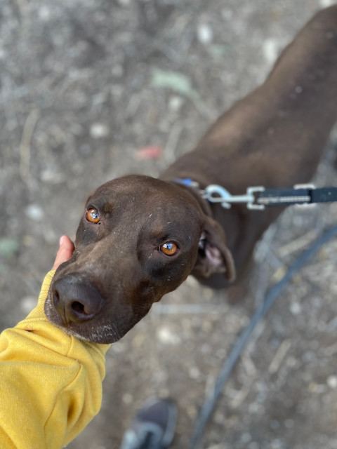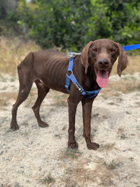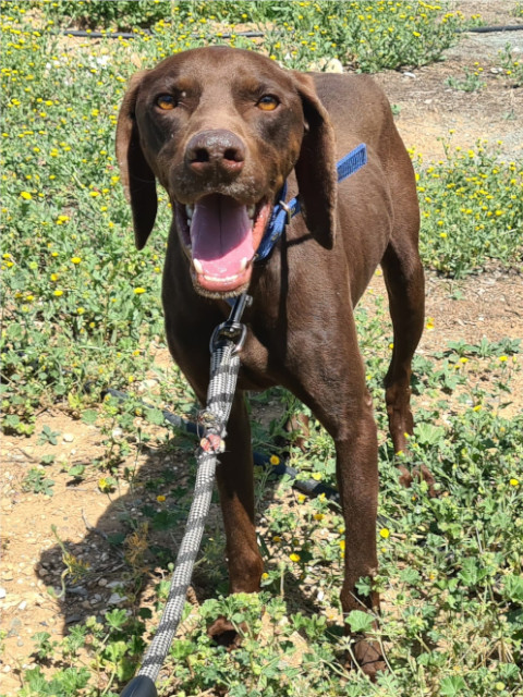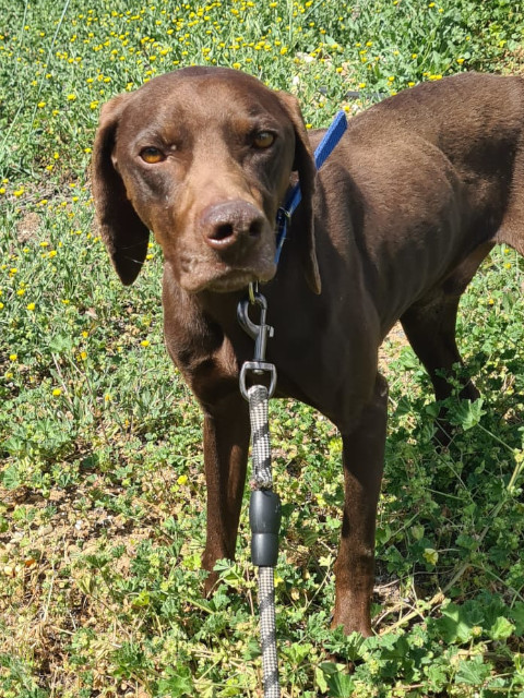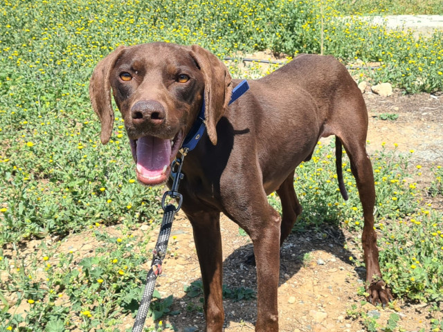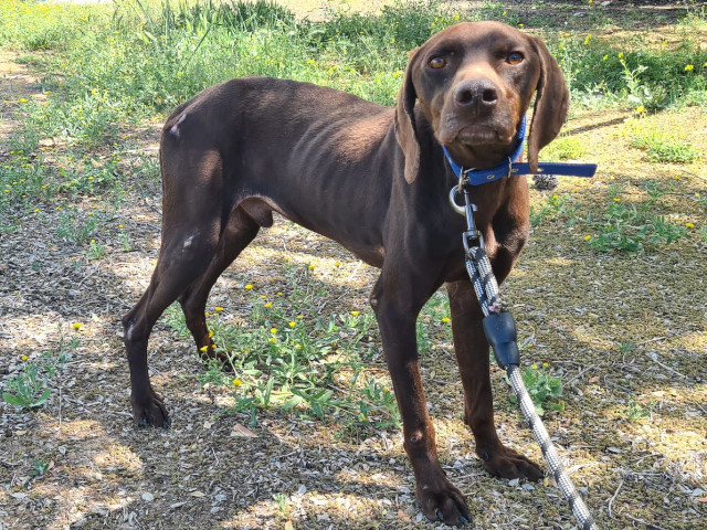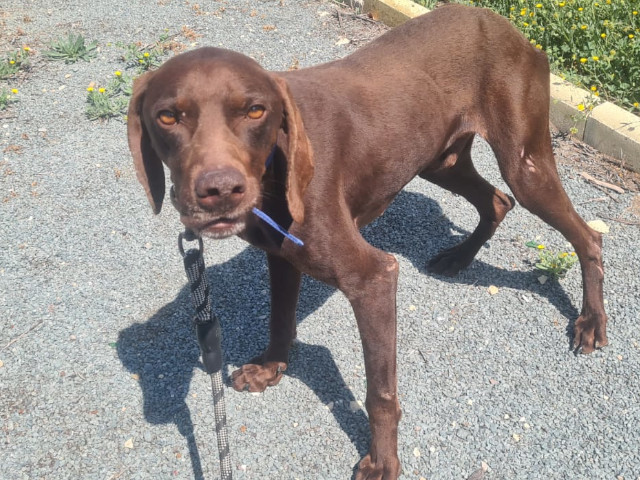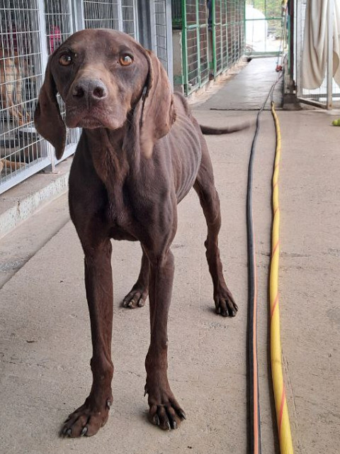 Rony - ein wunderschöner Pointer-Mix über dessen Vergangenheit man kaum Informationen hat. Er wurde von der örtlichen Jagdbehörde in dem für die Jagd vorgesehenen Gebiet gefunden und der Gemeinde übergeben, da er weder einen Miktrochip noch eine Kennzeichnung hatte. Nun ist er im städtischen Tierheim und wartet auf seine Menschen.
