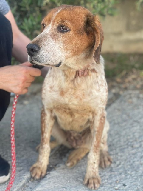 Rosa hatte sicherlich vorher kein gutes Leben bei diesem Menschen und ihr früheres Leben hat eine große Narbe an ihrem Hals hinterlassen, was auf eine Kettenhaltung schließen lässt. Rosa ist eine absolut nette und süße Hündin, sie ist freundlich zu allen. Noch kennt sie das Laufen an einer Leine nicht so gut, aber es wird schon mit ihr geübt. Rosa wirkt dadurch sehr ängstlich und es sieht ein wenig komisch aus. Rosa ist bereits eine erwachsene Hündin, man sollte von ihr keine Superaktivität erwarten, sicher ist sie schon etwas ruhiger, als ein junger Hund.