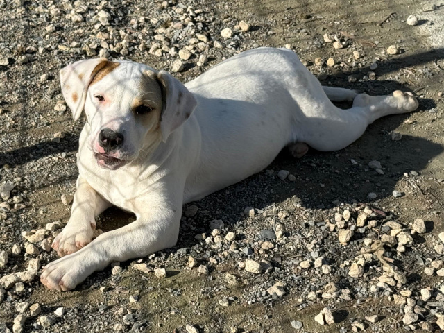 Rose ist eine weiß-braune, kurzhaarige Hündin mit wunderschönen, neugierigen Augen – eine von denen, die einem sofort ein Lächeln ins Gesicht zaubern. Im Vergleich zu ihren Schwestern zeigt sie sich etwas ruhiger, dabei aber ebenso menschenbezogen und liebevoll. Sie genießt Aufmerksamkeit sehr, lässt sich gerne streicheln und sucht die Nähe zu ihren Bezugspersonen. Rose ist eine sanfte kleine Seele mit einem ausgeglichenen Wesen. In ihr steckt viel Potenzial, das mit Geduld, liebevoller Führung und positiver Förderung wachsen darf. Für Rose wünschen wir uns ein Zuhause bei einfühlsamen Menschen, die ihr Sicherheit geben und sie Schritt für Schritt in ein erfülltes Hundeleben begleiten.