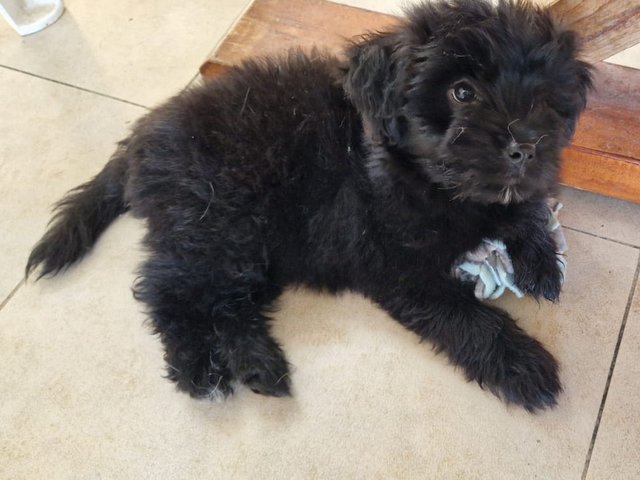 Wir nehmen an, dass sie "übrig " geblieben sind bei einem Züchter auf der Insel. Beide Welpen sind Maltipoos.