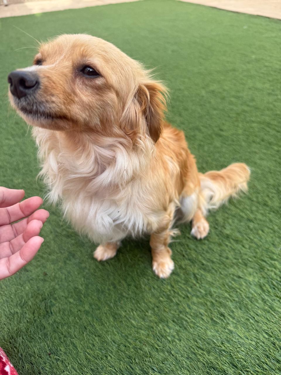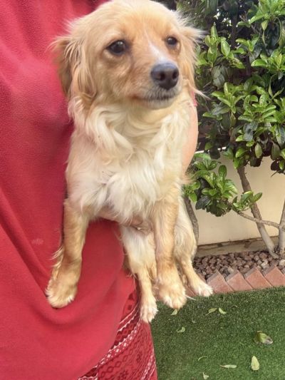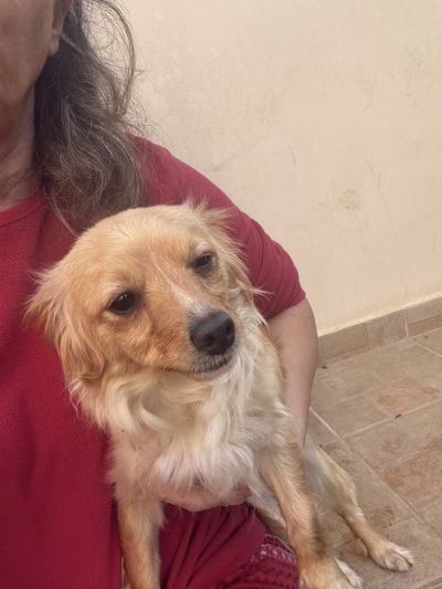 Ruby ist eine junge, goldfarbene Mischlingshündin, die stark an einen Kokoni‑Mix erinnert: zierlich, weich, freundlich und mit diesem typisch warmen, sanften Ausdruck. Ihr flauschiges Fell, die runden, liebevollen Augen und ihre kompakte Größe machen sie zu einer unglaublich süßen kleinen Begleiterin.