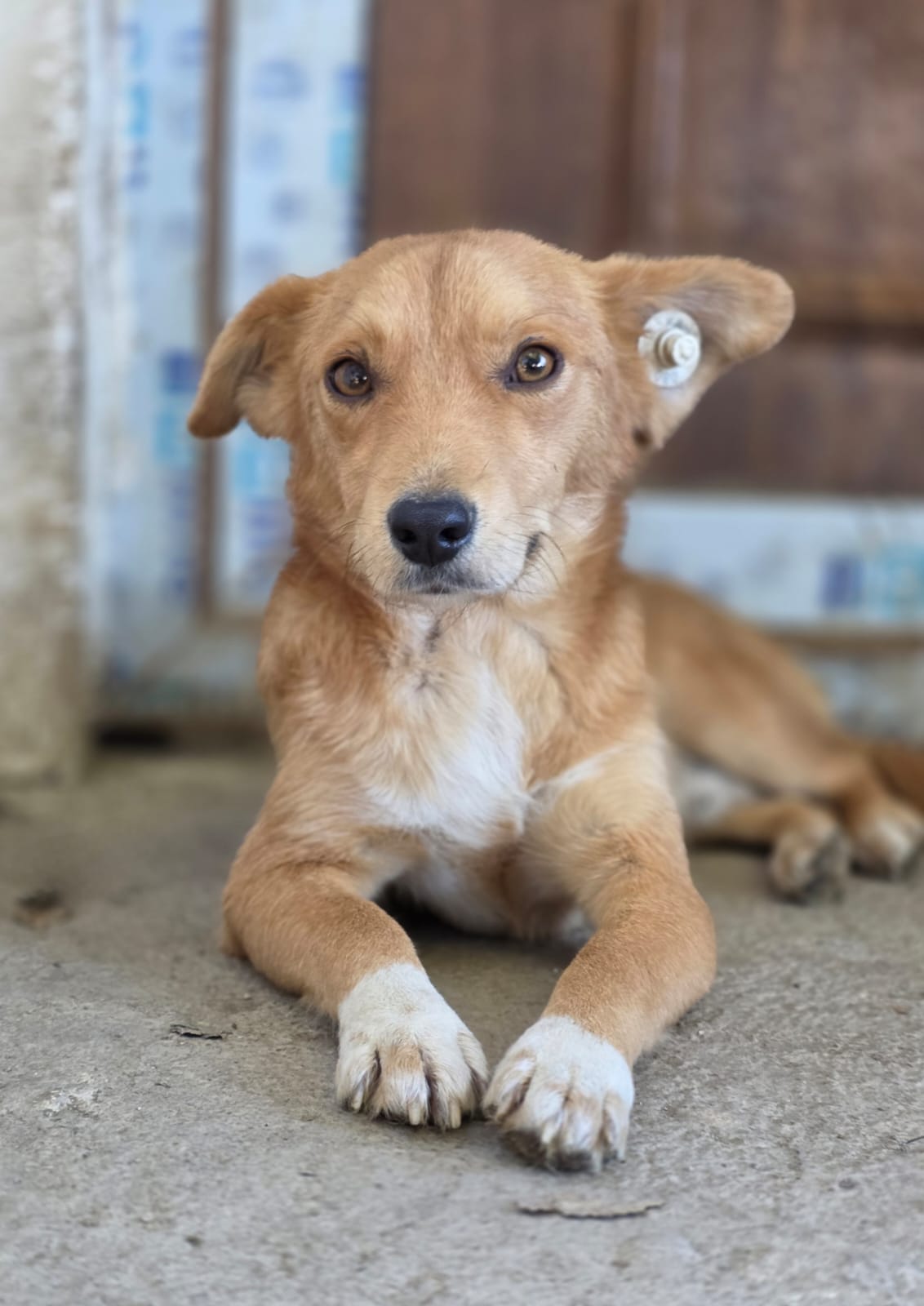 Viki hat Semy in der Tötungsstation gefunden und sofort mitgenommen. Jeder Hund, der in die Tötung eingeliefert wird, bekommt so einen Registrierungsknopf ins Ohr. Deshalb das Bild, noch mit Knopf im Ohr.