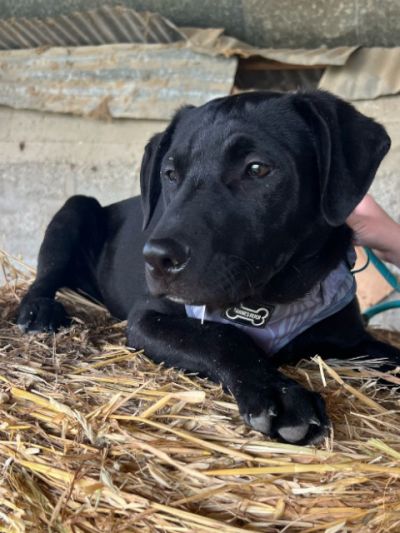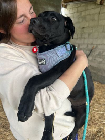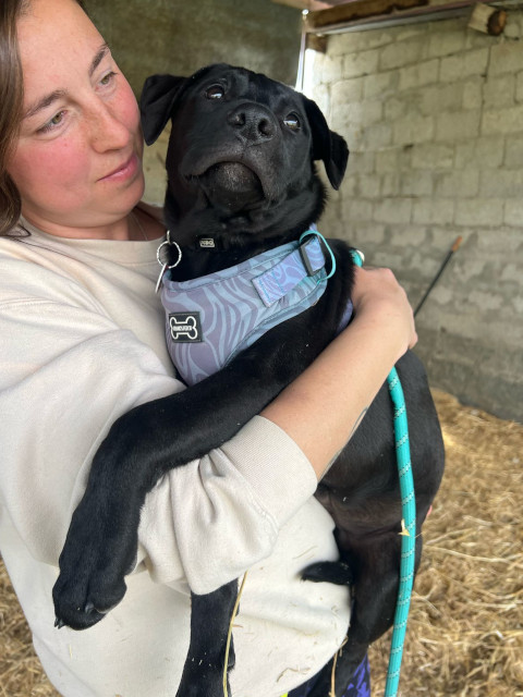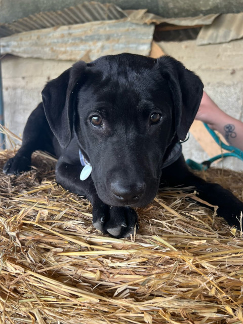 Shadow - sehr schöner schwarzer Labrador-Mix - wurde mit seinen Geschwistern in einer Werkstatt für große Fahrzeuge abgegeben bzw. zurückgelassen, die Mutter starb danach, wahrscheinlich wurde sie sogar vergiftet. Ein anderer Tierschützer bat das Roberts zu helfen und einige Welpen zu nehmen, sie nahmen 3 und haben bereits 2 davon an Engländer vermittelt und ein Welpe - Shadow blieb über und lebt derzeit in einer Pflegestelle bei einem jungen englischen Paar mit 2 Kindern.
