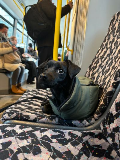 An öffentliche Verkehrsmittel ist er inzwischen fast gewöhnt. Anfangs war er dabei sehr ängstlich, hat aber in kurzer Zeit deutliche Fortschritte gemacht
